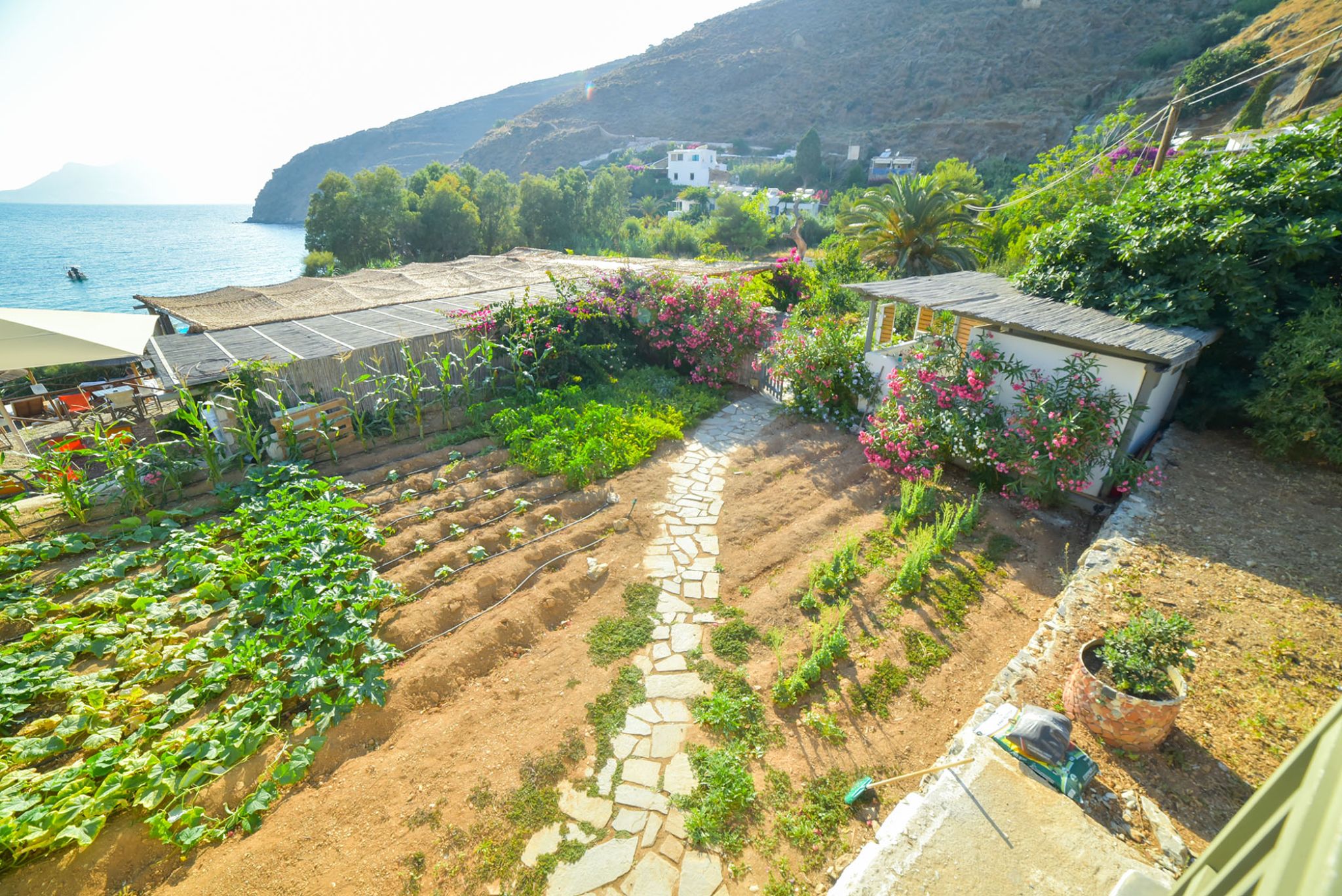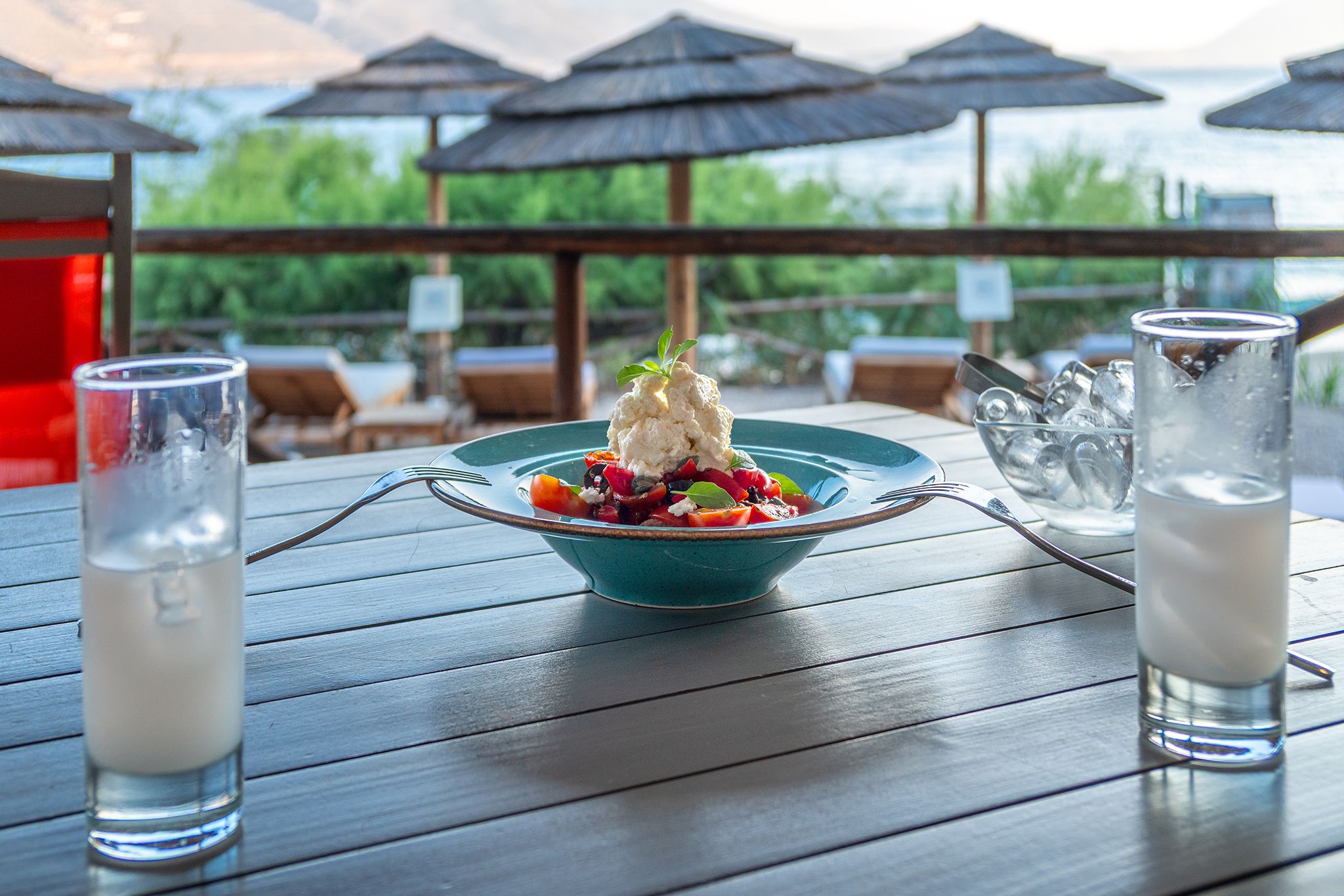 Petradi Beach Bar promises an unforgettable food experience with homemade all-day meals assembled with high-quality ingredients from our garden. Take a break from the beach and relish tasty omelets, handmade pies, refreshing salads, and other appetizing dishes, and enjoy the incredible Cycladic view with an exhilarating drink in hand.
