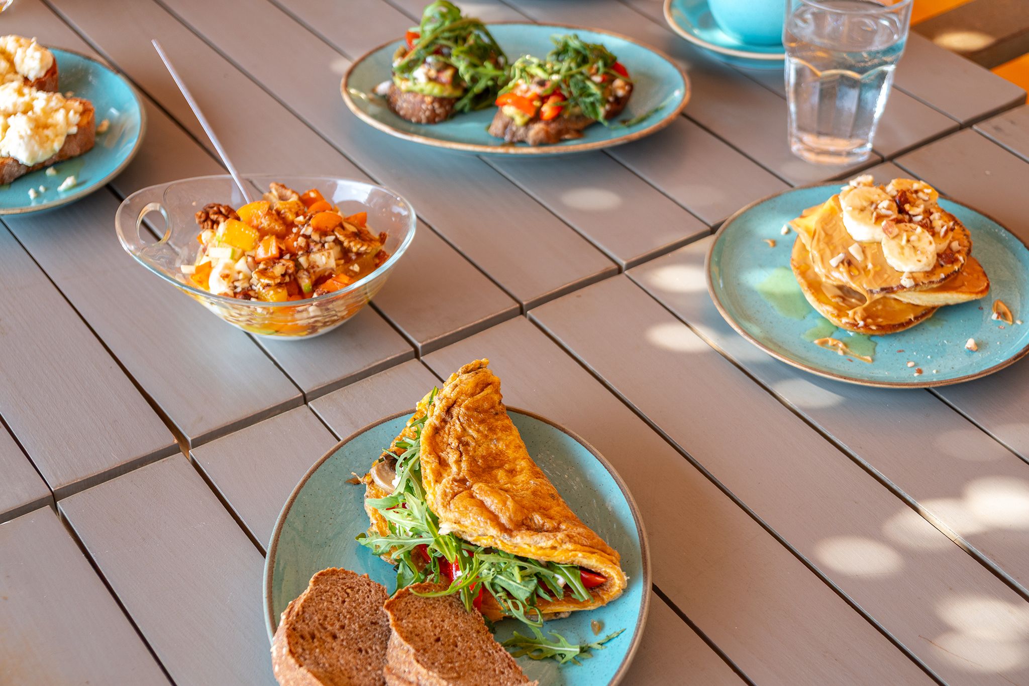 Enjoy the serenity of the early morning Cycladic breeze with our signature breakfast menu, while appreciating the beachside vibes and the spectacular sea view. Sip on a fresh juice or a luscious milkshake, and savor our mouthwatering honey-covered fritters, club sandwiches, homemade pies, and delicious muffins. Whether you're a sweet-tooth morning eater or a salty breakfast lover, start your day off with an unparalleled combination of homemade dishes and wavy views.