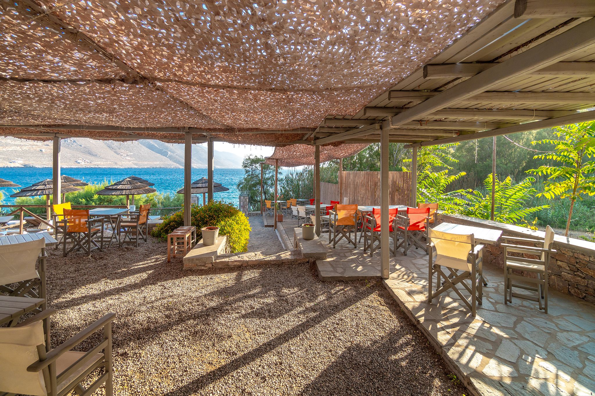 Experience a laid-back summer lifestyle on your sunbed or at the table seats, and inhale the cooling seaside breeze!