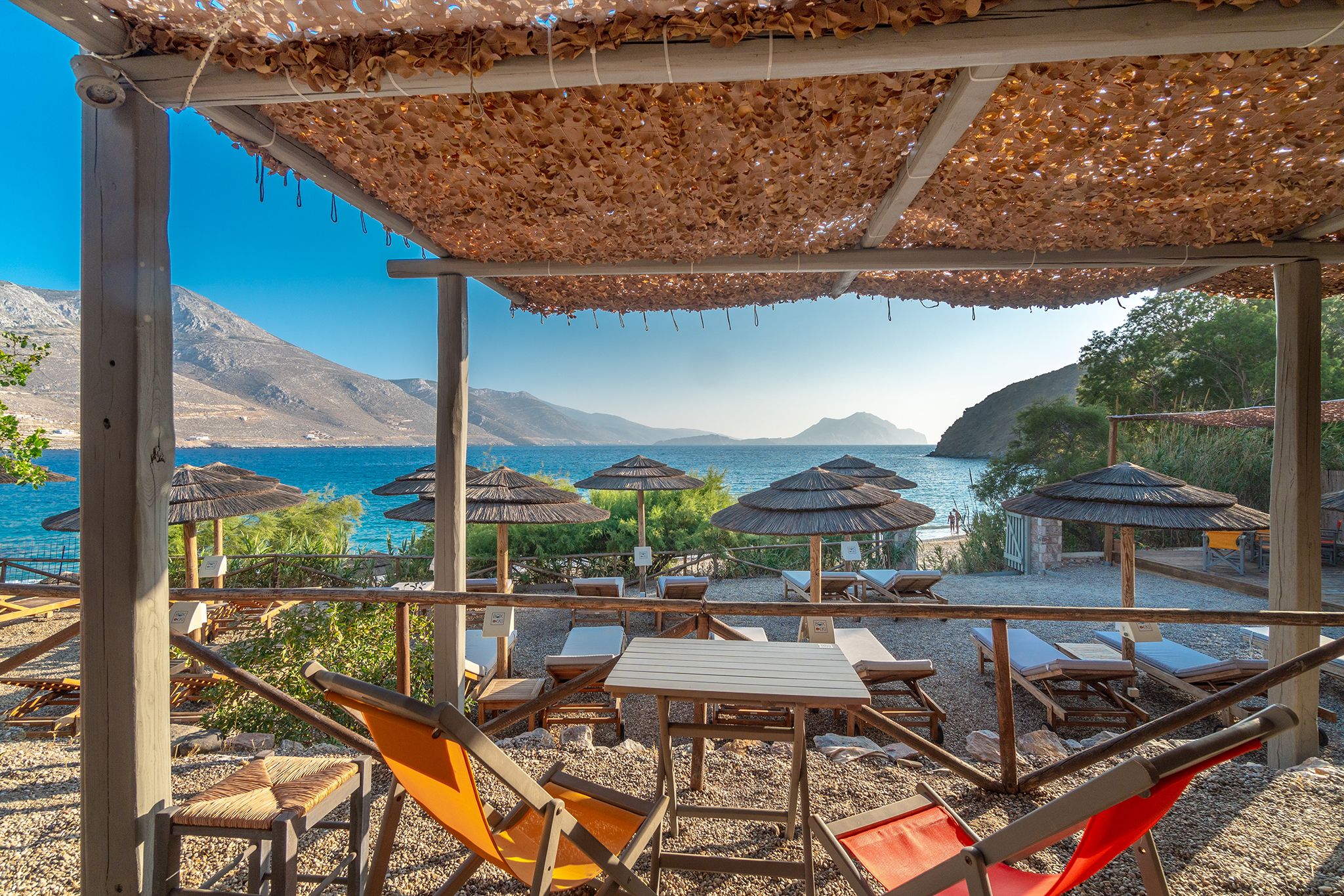 Find your piece of paradise at Petradi Beach Bar in Amorgos, where the light-blue waters of Levrossos beach greet the Cycladic cliffs and gratify your lust for pristine island views.